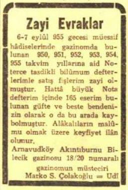 “Zayi Evraklar”, Cumhuriyet, 16.09.1955.