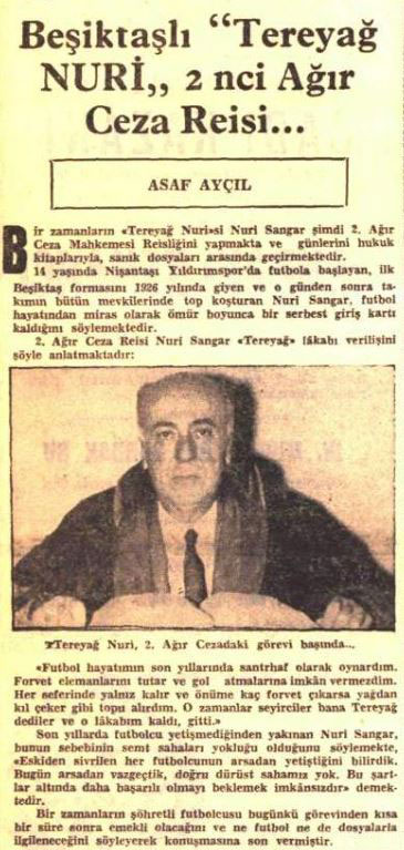“Beşiktaş’ın eski ünlü futbolcusu Nuri Sangar vefat etti”, Milliyet, 28.01.1982.